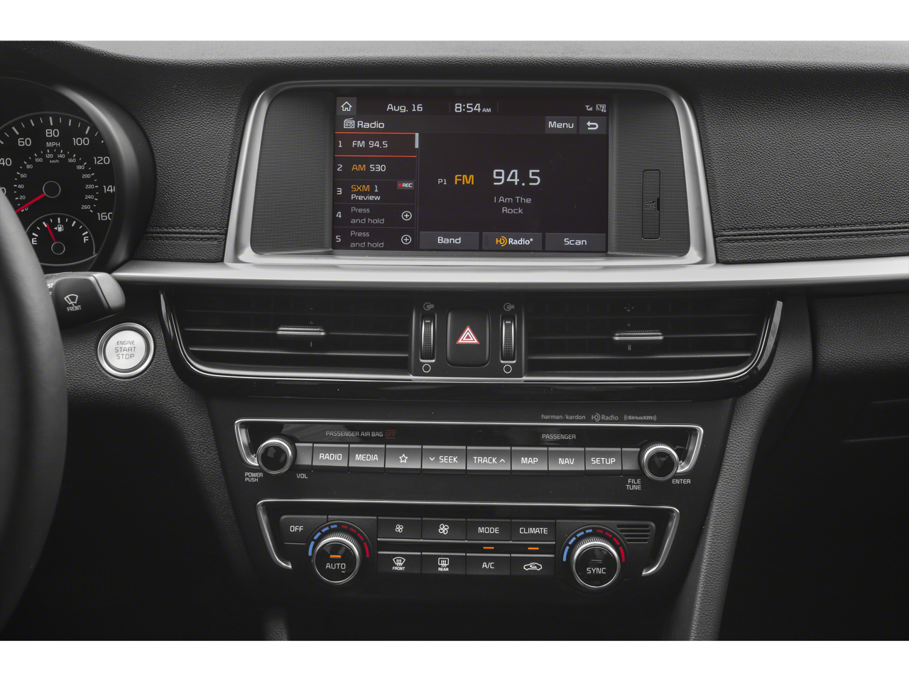 - Radio: AM/FM/MP3/SiriusXM Audio System -inc: 6 speakers, 8" color touch-screen display, auxiliary input jack, 2 USB chargers, Bluetooth® wireless technology and UVO Link w/support for Android Auto and Apple CarPlay