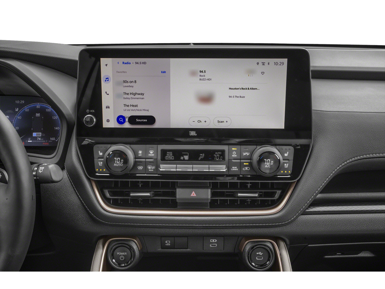 - Radio: 12.3" Toyota Audio Multimedia w/JBL Premium -inc: 11 speakers, voice activated commands, dual Bluetooth® phone connectivity, wireless Apple CarPlay and Android Auto compatibility, HD Radio, USB and SiriusXM w/3-month platinum plan trial subscription